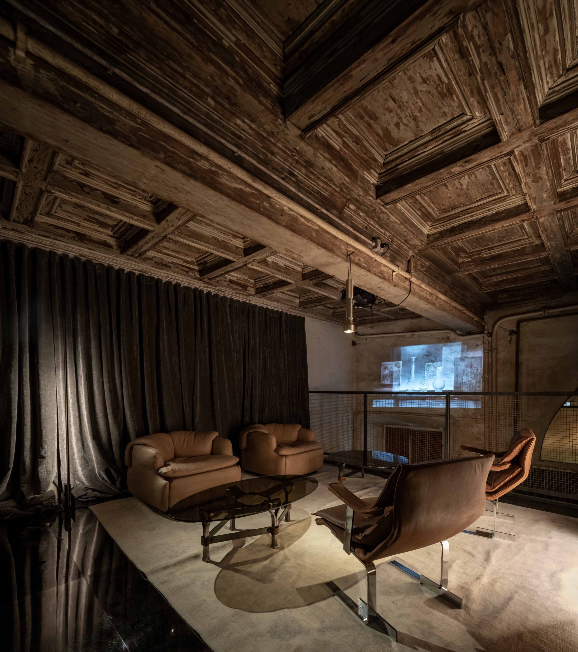 Peeking behind the curtain reveals the material library: travertine, wood, marble, all reflecting our bespoke approach to design, where every material arises from a need or request. We communicate the “it can be done” attitude; the problem with craftsmanship is that if there is no experience, it cannot be done. For us, however, it is a process that naturally arrives at its completeness.