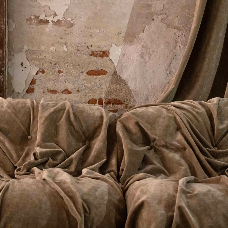 In the first room, our A/FRESCO recovers the beauty of Umbrian farmhouses, revitalizing materials and places with colors ranging from Assisi stone to southern villages. Every detail, from textures to grain sizes, offers infinite possibilities for adaptation and transformation, surpassing the limits of the material itself and reflecting an idea of order within complexity.
