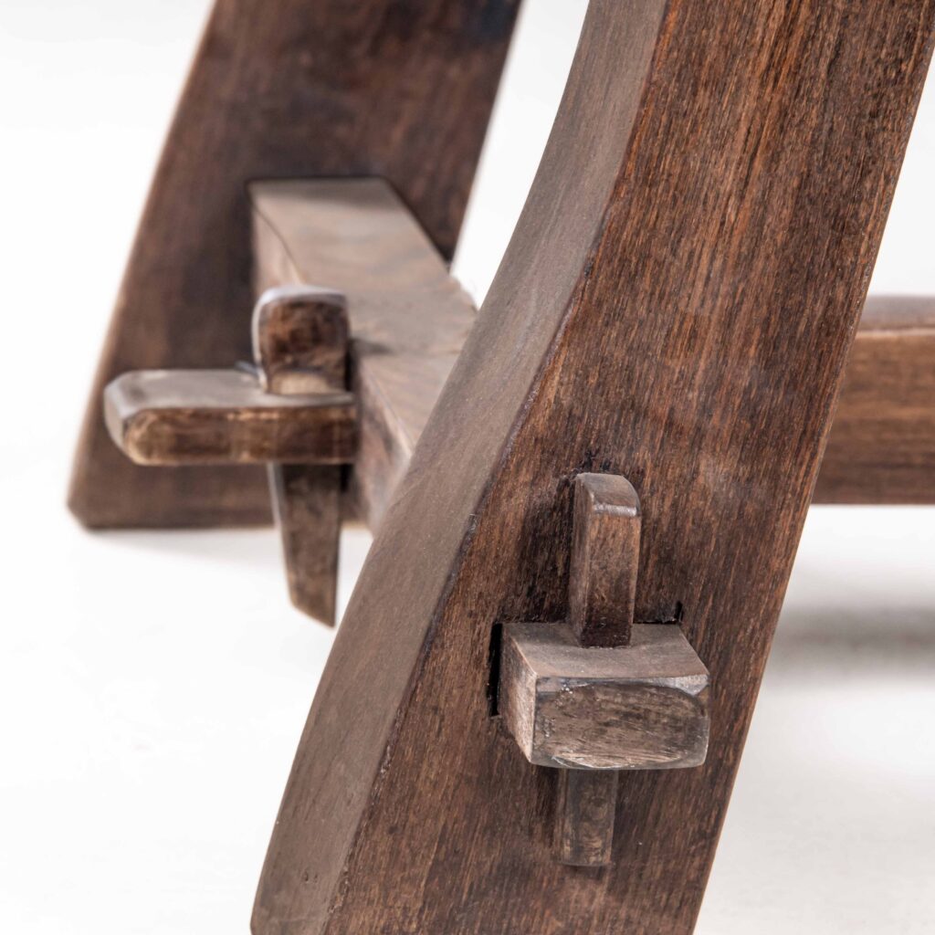 The “Cornaro Sofa” is one of the most famous works by the renowned Italian architect and designer Carlo Scarpa. Created in 1974, this masterpiece is named after the Cornaro family, an aristocratic Venetian family with a long history and strong presence in art and culture. The frame, made by Simon Gavina, is made of Iroko wood, a native of West Africa, renowned for its durability and natural beauty. The light-coloured padded upholstery nestles into the wooden frame and is held in place by rubber straps. It is a piece that tells the story of the cultivated and international hospitality of literary salons and the heated exchange of political ideas.