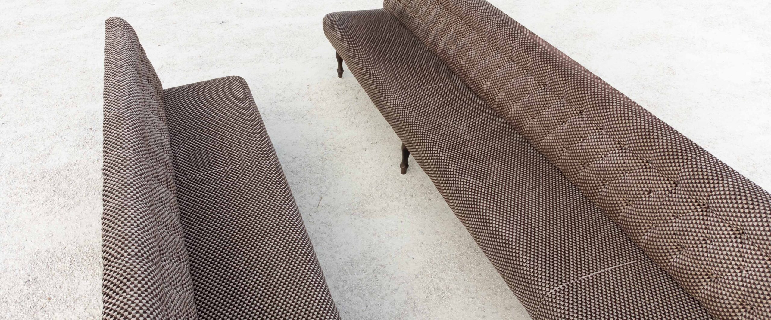 Ogni tessuto compone, delinea e crea spazi in sintonia con i luoghi circostanti: affinità cromatiche, letture geometriche, assonanze materiche.