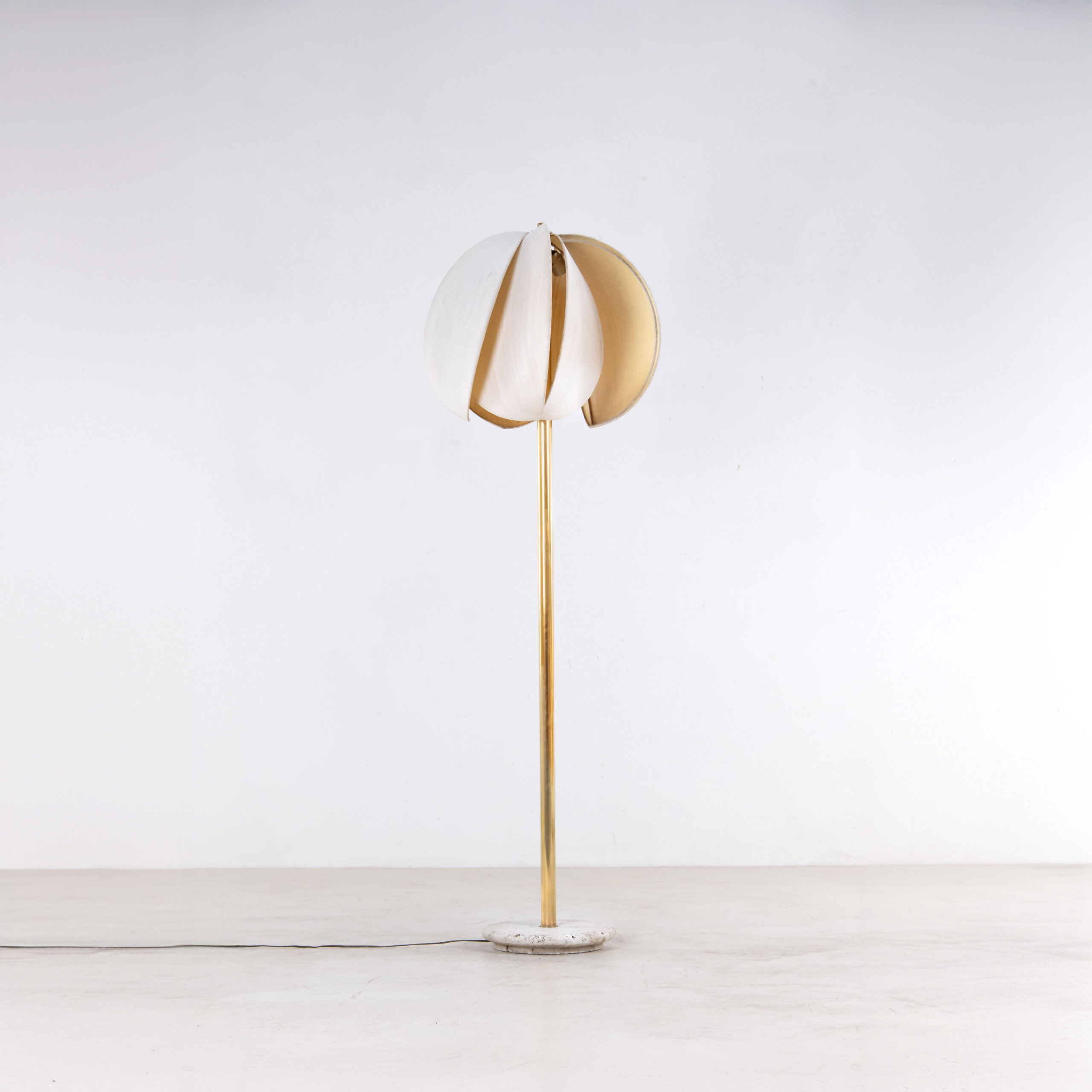 Le lampade che abitavano i salotti degli anni ‘30 erano ispirate all’eleganza dell’era del jazz e della Belle Époque . Con finiture lussuose e sfumature dorate, questa lampada da terra diffonde un’atmosfera avvolgente, trasformando gli interni in ambienti di raffinato comfort. La base circolare è in travertino, il cappello è formato da più elementi a forma di petalo che si incontrano verso il basso e vanno a racchiudere la luce, come il fiore fa per proteggere il suo pistillo. Elemento luminoso perfetto per creare un’aura di glamour retrò nelle case moderne. |
