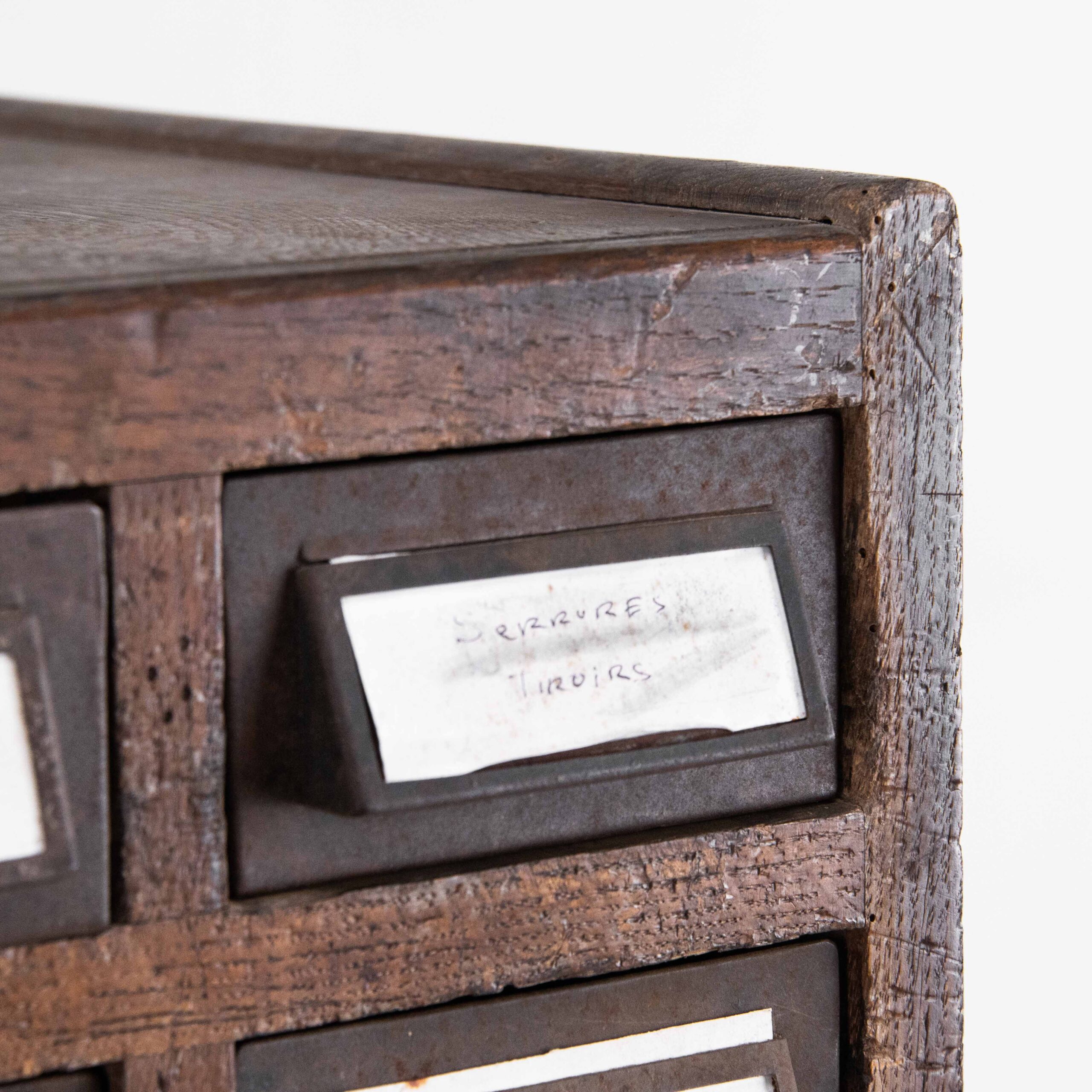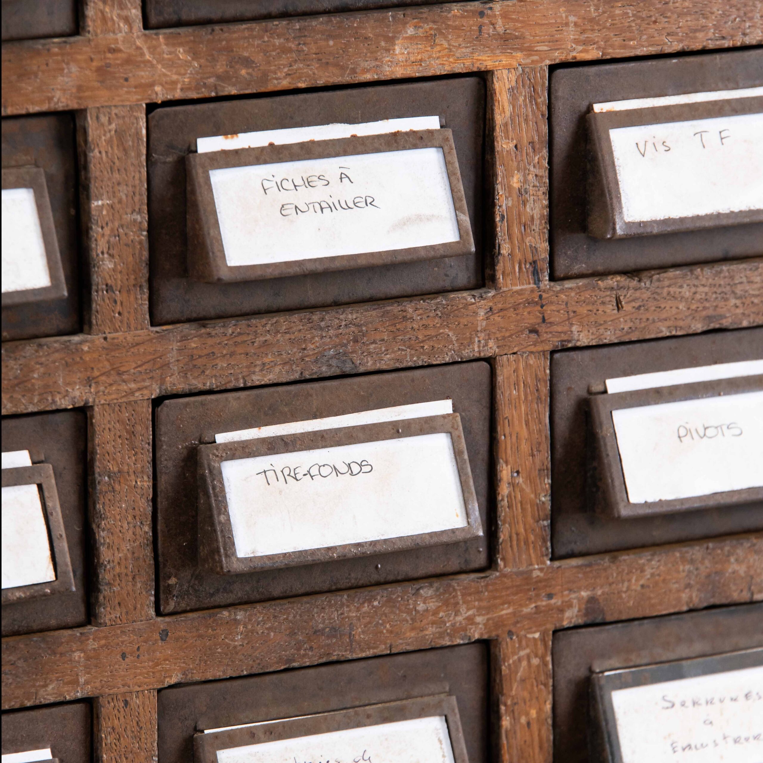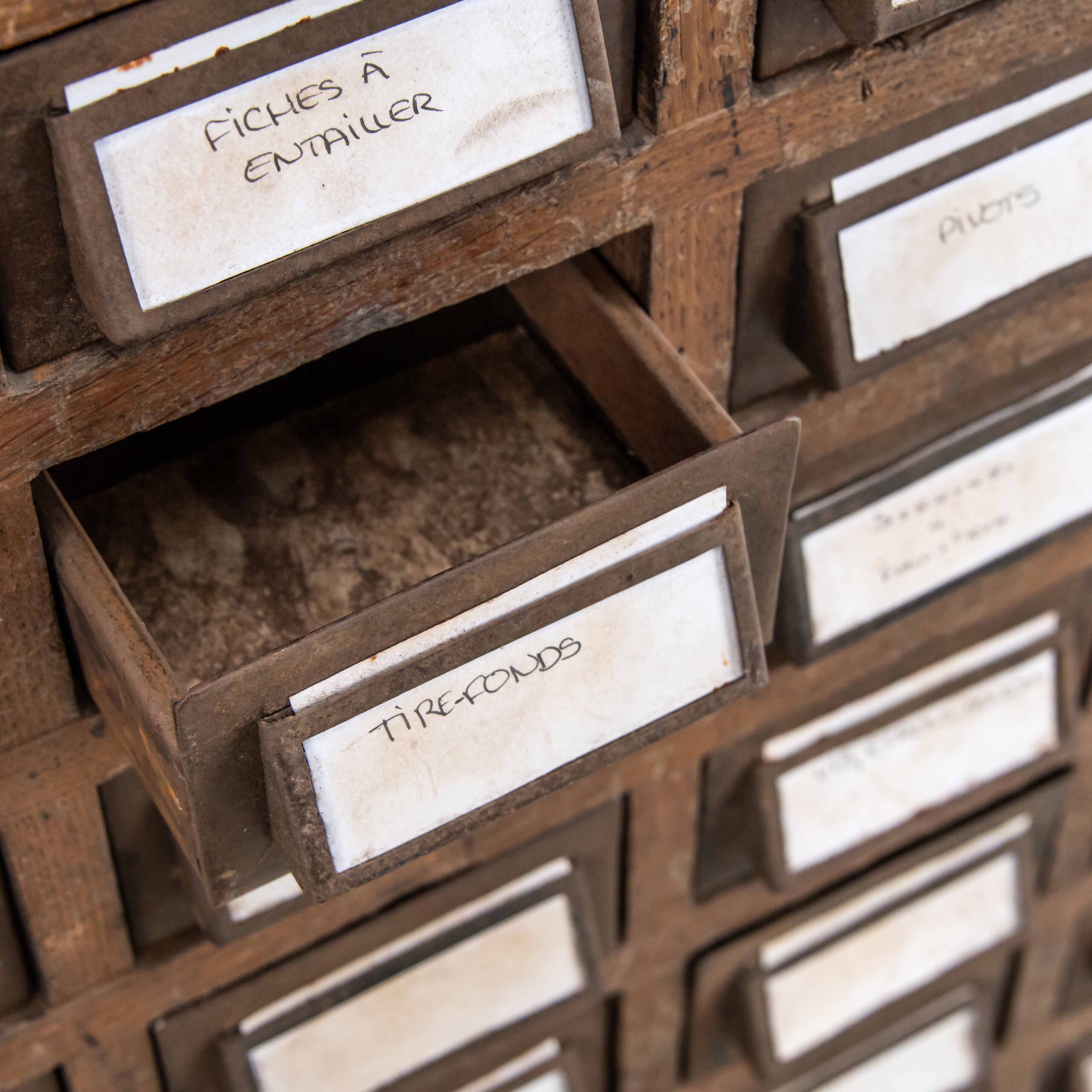 Questo mobile contenitore evoca l’essenza delle fabbriche e delle botteghe del passato. Un sistema di organizzazione dove ogni “dettaglio” è tenuto al suo posto. Realizzato in legno si distingue per la sua praticità e il suo fascino composto. I piccoli cassetti in ferro che si sviluppano in lunghezza si aprono grazie alla maniglia dove è possibile inserire l’etichetta che descrive il contenuto interno. L’insieme di tutti i cassetti sistemati nel blocco compatto del mobile manifesta come è possibile ordinare la complessità.